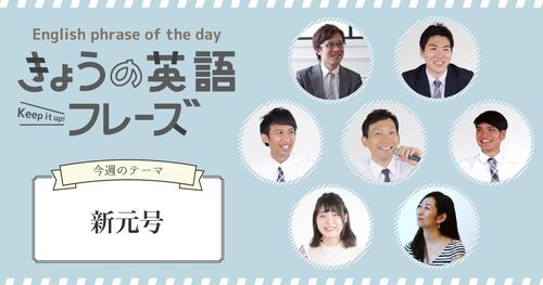 きょうの英語フレーズ、今週のテーマは「新元号」。「平成」の時代が幕を閉じ、元号が「令和」に変わりましたね。新たな時代の始まりは、お祝いムードでワクワクした方も多いのではないでしょうか。そんな時期にぴったりの、新元号にまつわるフレーズを集め…