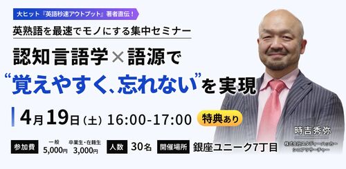 英熟語の暗記が苦手な方に朗報! ベストセラー講師による「英熟語を最速でモノにする集中セミナー」開催決定!