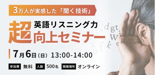 英語リスニングのために絶対に必要なふたつのこと。3万人が実感した『聞く技術』をリアルに体感【7/6(日)無料ウェビナー開催】