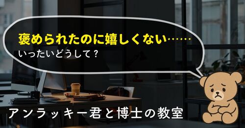 褒められてもモヤモヤする理由を探索するアンラッキー君の物語。心に響く褒め方と自己肯定の大切さを、博士が科学的にみちびきます。