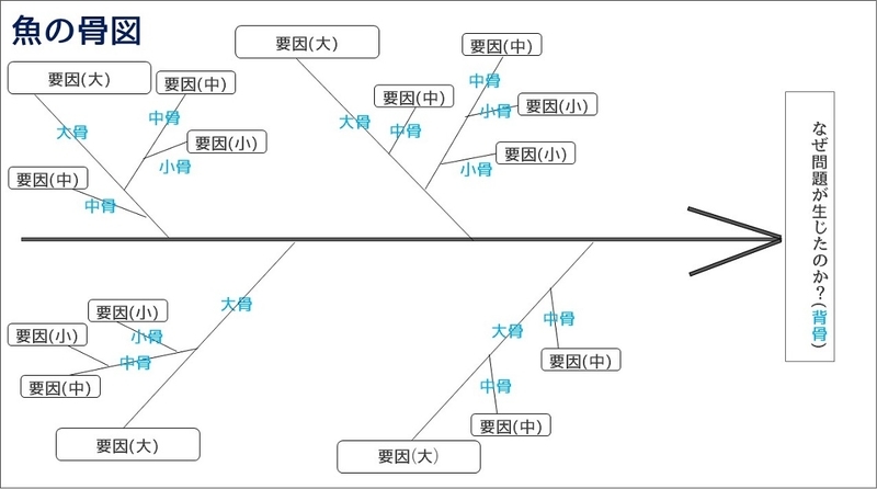 このときのコツとしては、大骨は問題の要因として考えられやすいこと、中骨は大骨に対して考えられやすいこと、小骨は中骨に対して考えられやすいこと、というように書くことです。
